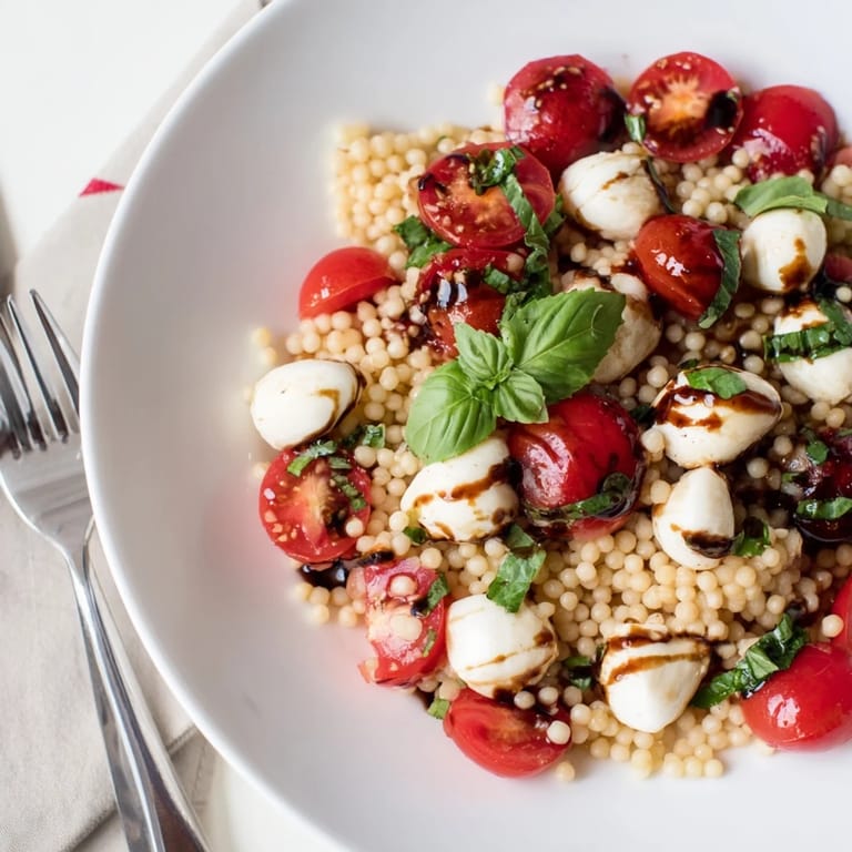 Last summer, I brought this to a poolside potluck and watched three different people ask for the recipe within ten minutes. Theres something about the tiny pearls of couscous clinging to the balsamic that makes people lean in closer and go back for seconds.