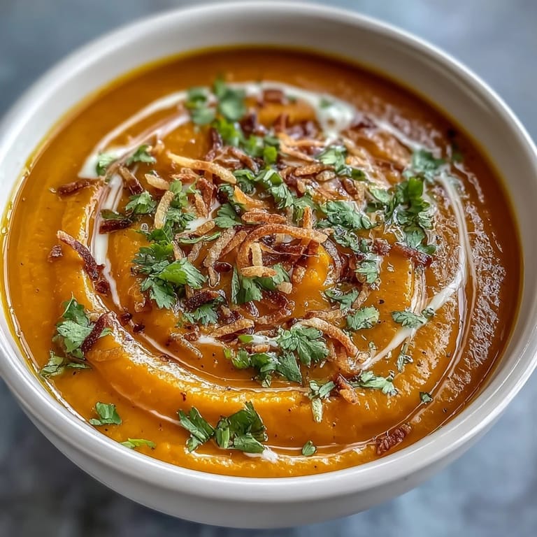 Save There's something about the smell of carrots hitting hot oil that makes a kitchen feel instantly warmer. I discovered this soup on a grey afternoon when my fridge held little more than root vegetables and a can of coconut milk, and I was desperate for something that didn't feel like settling. What emerged was this silky, golden bowl that tasted far more intentional than its improvised origins deserved, with just enough warmth from the spices to feel like a hug from the inside.