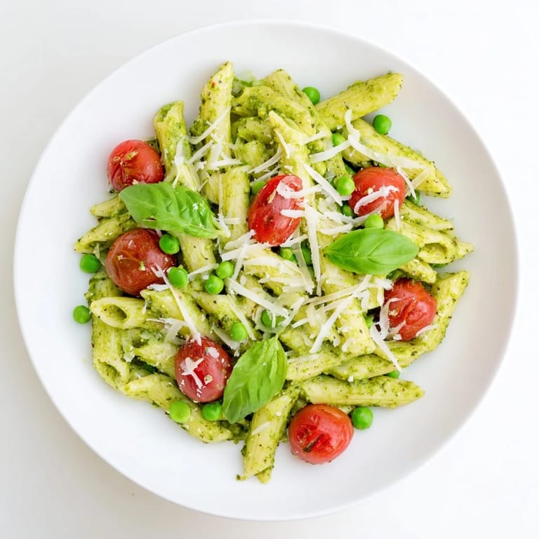 - Cherry tomatoes (200 g): Halved tomatoes release a little juice that mixes with the pesto and turns into a light, silky coating.