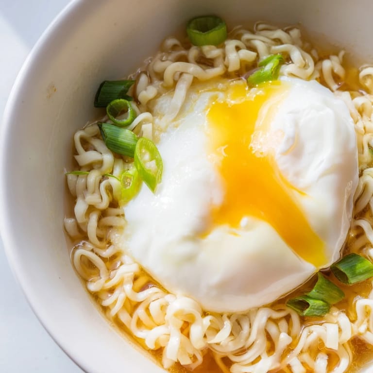 Save There's something magical about watching an egg slowly cook in barely simmering broth—the white turns opaque while the yolk stays golden and runny, ready to cascade into your noodles. I discovered this technique by accident one weeknight when I was too hungry to wait for a proper meal and too tired to cook anything ambitious. The result was so good that instant ramen stopped feeling like a compromise and started feeling like a treat.
