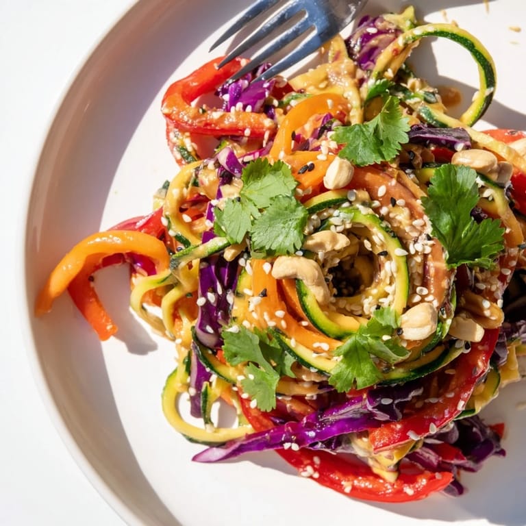 Save Last summer my sister brought over a spiralizer she impulse bought and we spent hours turning everything in the fridge into curly ribbons. We laughed until our sides hurt making noodles out of apples and beets just to see what would happen. This salad came from that playful afternoon, though we quickly learned the zucchini and carrot combination was actually worth keeping. The crunch of fresh vegetables with that tangy sesame dressing has become my go to when I want something light but satisfying.