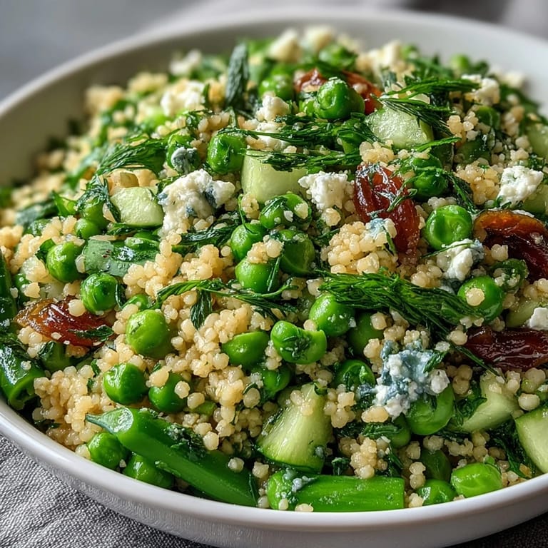 Save The invite for that spring lunch arrived with a flourish β a promise of sunshine and laughter. I found myself puzzling over what to bring until the smell of fresh mint wafted up from the market, nudging me toward this couscous salad. Preparing it, I couldn&'t help but notice how the peas popped brightly against the grain, giving the whole bowl a cheerful vibe. The first taste was a surprise: lemon, mint, and olive oil all singing together, light yet lively. It&'s a dish I&'ve returned to again and again, especially when the weather promises new beginnings.