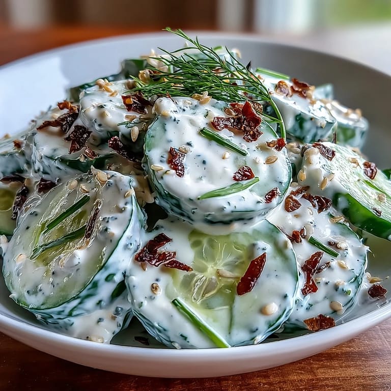 Save There's something oddly thrilling about hearing the thump of cucumbers against the cutting board while sunlight streams through the kitchen window. One lazy afternoon, I stumbled upon this vibrant cucumber salad scrolling through a flood of clips online. Before I knew it, I was whisking together a creamy, tangy dressing, not sure what to expect but loving the anticipation. The crunch, the pop of everything bagel seasoning—it all surprised me in the best way. Now it's my go-to when I crave something crisp, cool, and impossibly easy.