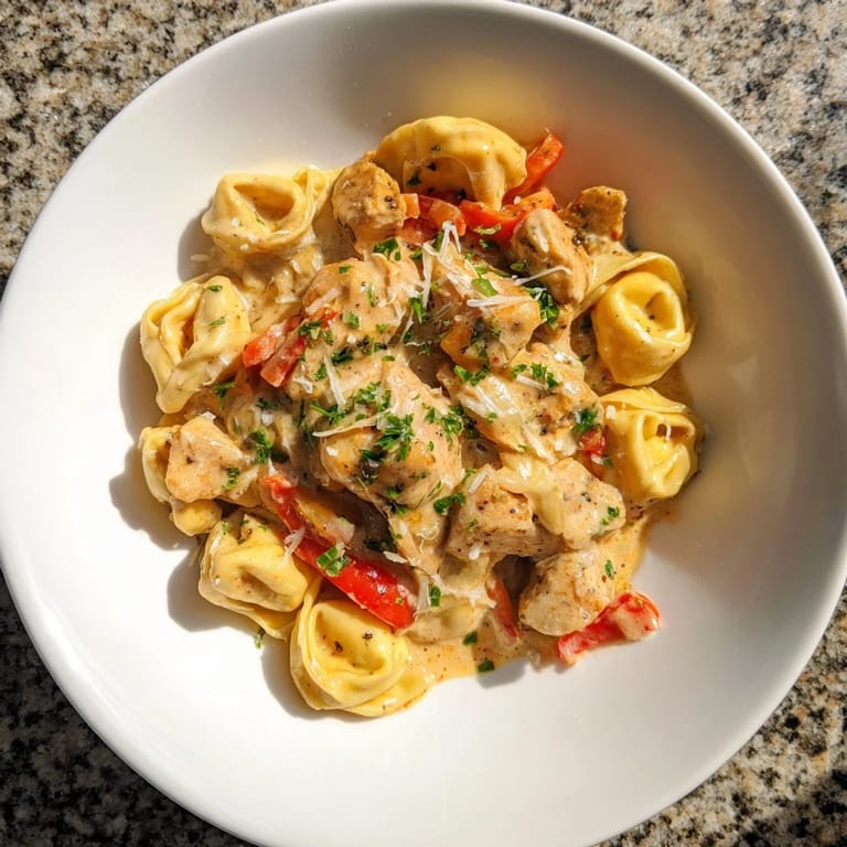 Save A vibrant and flavorful pasta dish featuring tender chicken, cheesy tortellini, and a creamy Cajun garlic Parmesan sauce. Perfect for a quick weeknight meal with a spicy kick.